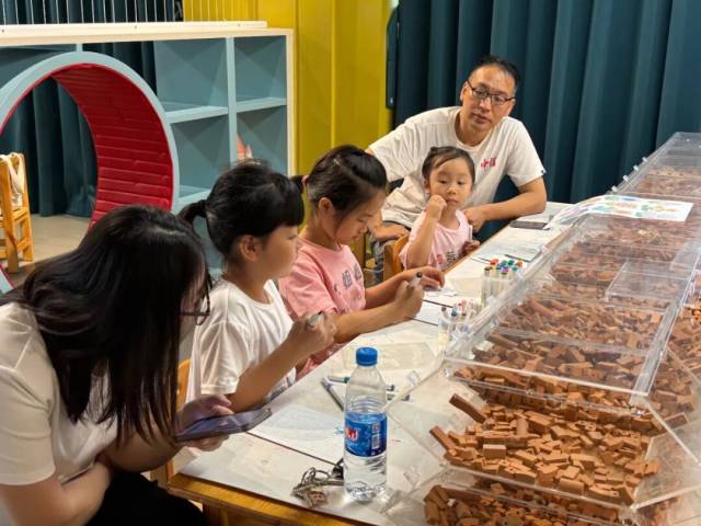 DIY拼图拓展环节,文化志愿者老师为孩子们发放拼图,在亲子协作拼搭的过程中,家长们趁机和孩子聊起“哪些内容能发上网”,孩子指着拼图对妈妈说:“我以后只发画画的视频,不发不好的事情!”