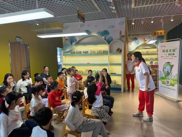 在讲述过程中,志愿者老师不时与小朋友互动:“如果在网上看到陌生人要你的家庭地址,该怎么办呀?”“要告诉爸爸妈妈!”“不能随便给!” 孩子们纷纷举起小手,稚嫩的回答中透着认真。