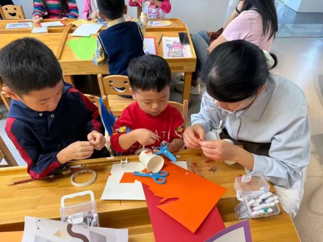 到了创意环节,小朋友们拿到材料后,立刻化身 “小小艺术家”,迫不及待地开始构思。有的家庭选择用彩笔在卡纸上画出形态各异的小猫,有的小朋友给小猫画上了长长的胡须和大大的眼睛,还搭配了彩色的蝴蝶结;有的家庭则巧妙利用纸杯做小猫的身体,用剪刀将卡纸剪成三角形当耳朵,再用彩笔勾勒出五官,一只可爱的 “纸杯小猫” 就诞生了,整个创作过程充满了欢声笑语。