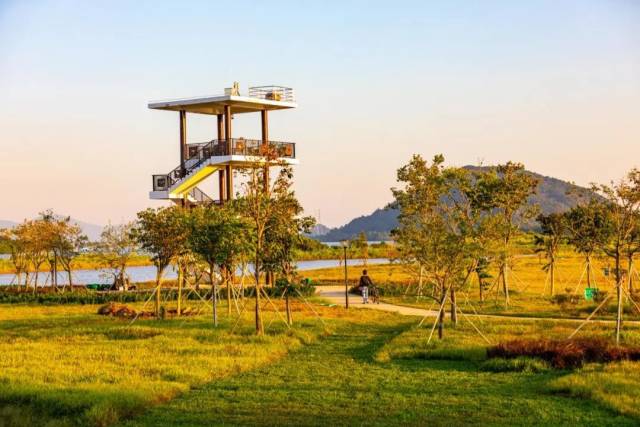 位于碧道南端堤岸(大鳌尾罗家围),园区入口设置有小型广场,园区内则根据现状条件堆坡造岛、设置观鸟楼等,营造生态休闲环境空间。