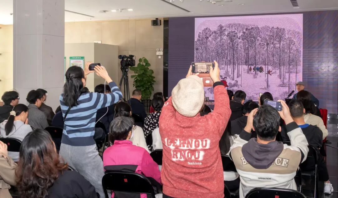 展览开展当天,美术馆邀请了南京书画院院长、金陵美术馆馆长、中国美术家协会版画艺术委员会委员、中央美术学院国际版画研究院副院长、中央美术学院版画系客座教授、南京艺术学院客座教授、南京师范大学美术学院硕导、西安美术学院硕导、二级教授、第十三届全国美展评委、国家艺术基金专家评委刘春杰,以 “这些年,我用版画思维做了什么” 为题举办分享会,分享其在版画创作与艺术实践中的深层思考与跨界探索。