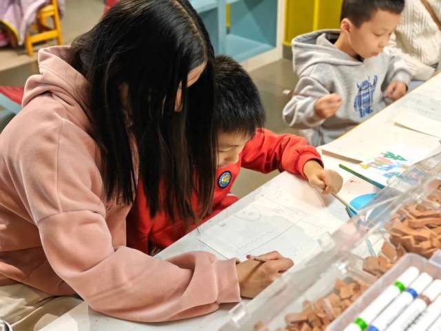 故事的余韵还未散去,创意的翅膀已然展开。在最后的亲子绘画环节,孩子们化身小小设计师,与爸爸妈妈共同执笔,描绘“我心中的大房子”。