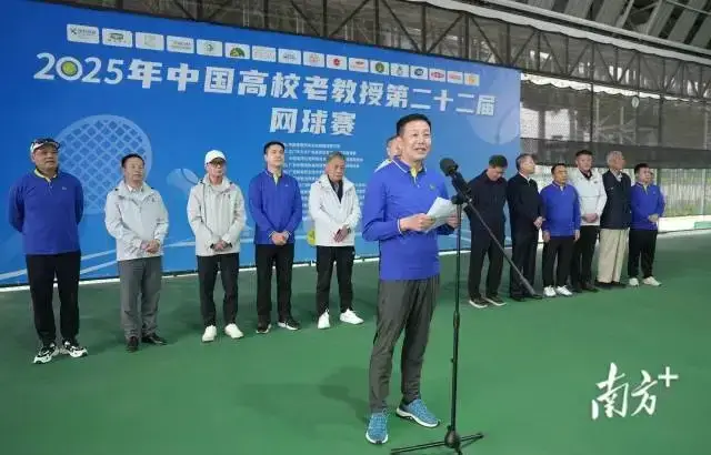 冬韵侨乡,暖意融融。12月6日上午, 由江门市文化广电旅游体育局指导,中国老教授协会高校网球俱乐部主办,江门市网球协会、广东省老教授协会网球俱乐部共同承办的2025年中国高校老教授第二十二届网球赛在江门开幕。来自各地高校的老教授和各界嘉宾共200余人,齐聚广东邮电职业技术学院江门校区网球场,共同迎来一场属于中国高校老教授群体的体育盛会。近年来,江门始终致力于推动全民健身与体育事业深度融合,而本次赛事的落地,不仅为全国高校老教授们搭建了交流切磋、增进友谊的平台,更将进一步推动老年体育事业发展,传承体育精神、凝聚奋进力量。