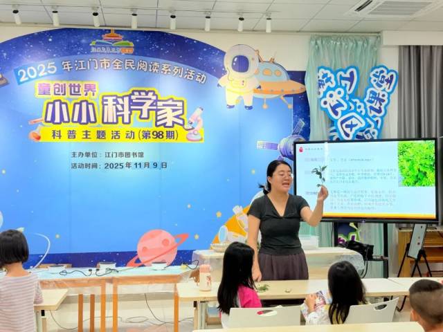 江门市图书馆“童创世界——小小科学家”科普主题活动第97-101期活动横跨科技应用、自然草本、声学原理、物理现象等多个趣味科学领域,以“知识讲解+动手实操”的核心模式,让孩子们跳出书本束缚,在亲身实践中触摸科学本质、感受探索魅力。