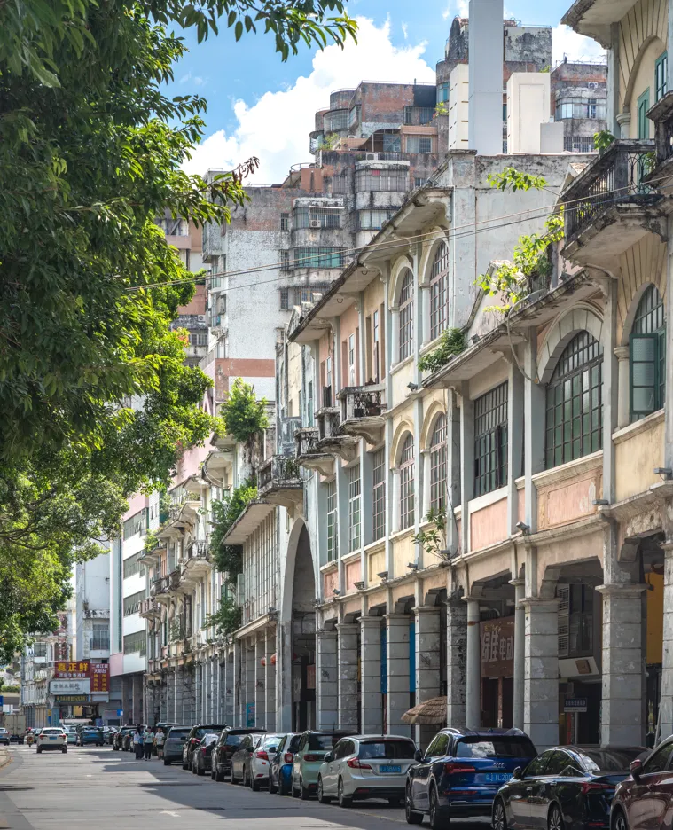 这些骑楼巧妙地融合了中式屋身与西式柱廊,巴洛克山花、罗马柱与满洲窗和谐共处,勾勒出岭南天际线上最动人的混血风景线。