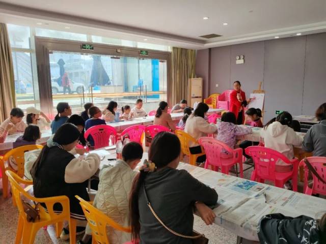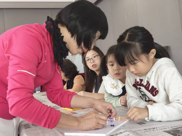 实操环节中,由团队中的唐老师和张老师面对面进行示范线材选择、工具使用等基础要点入手,手把手指导学员们学习基础结式。穿、绕、压、挑、编、抽……看似简单的动作,实则暗藏巧思。学员们凝神专注,跟着老师的步骤一步步操作,遇到难题时及时提问,唐老师耐心细致地逐一解答,还亲自示范纠正手法。现场氛围热烈又温馨,原本互不相识的学员们还主动分享技巧、互相帮忙,在交流中增进了对非遗技艺的理解。