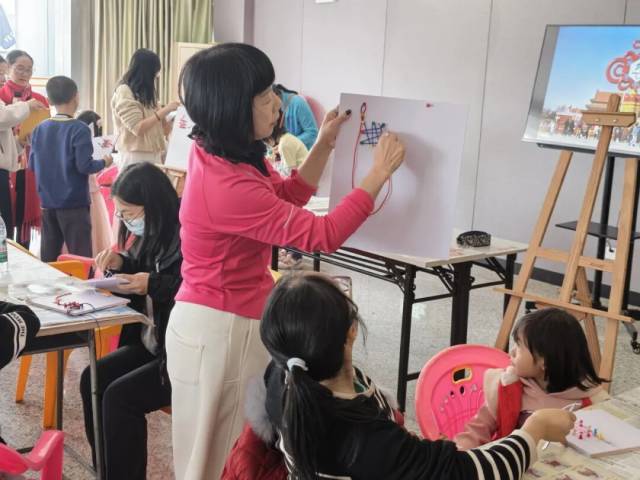 作为承载着中华优秀传统文化的古老技艺,东方绳结以“结”传情,每一款绳结都蕴含着吉祥美好的寓意。活动伊始,李老师结合自身传承经历,向学员们娓娓道来东方绳结的历史渊源与文化内涵,从基础的绳结符号寓意,到不同结式在传统民俗中的应用场景,生动的讲解让大家对这门非遗技艺有了全新认知。“绳结不仅是手工艺品,更是咱们中国人情感的寄托,一双巧手就能把祝福编织进丝丝缕缕里。”李老师的话语让现场学员对接下来的实操体验充满期待。