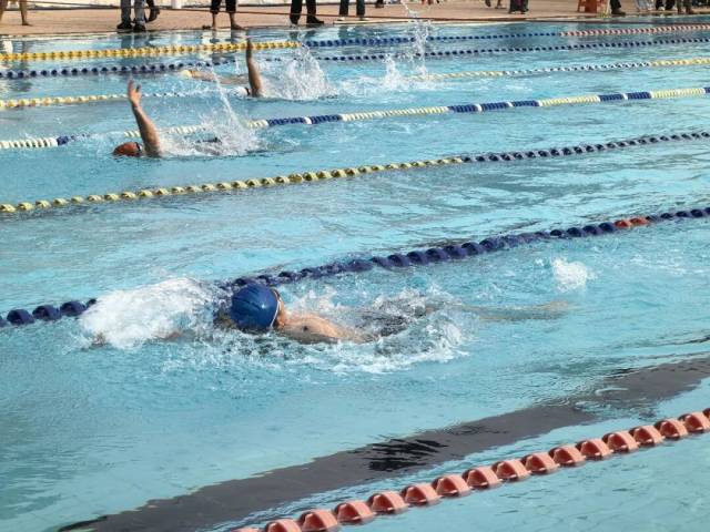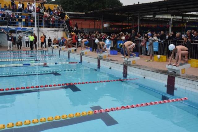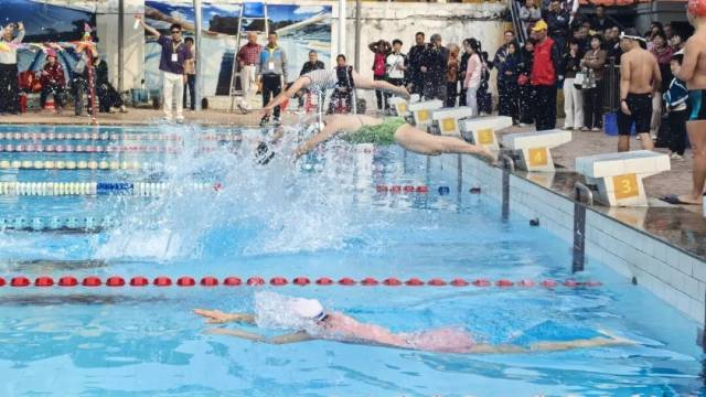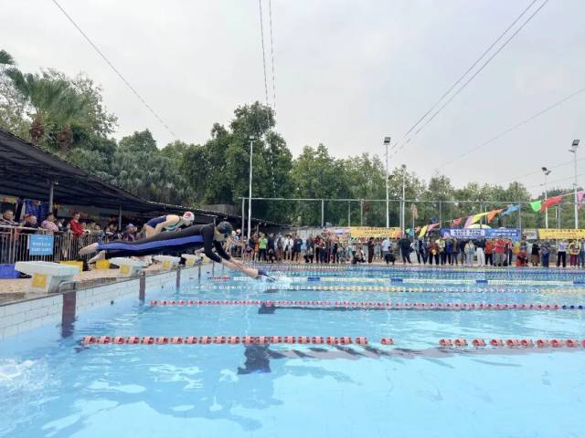 随着发令枪响,选手们纵身跃入水中,以矫健身姿劈波斩浪,在泳池间展开激烈角逐。赛场周边,亲友团、观众的呐喊助威声此起彼伏。