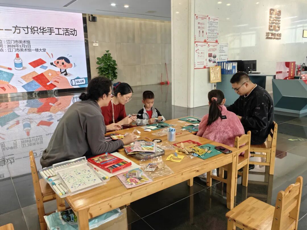 2026年元旦之际,江门市美术馆成功举办“方寸织华”手工体验活动。旨在通过引入传统纹样这一优秀题材,以可触、可感、可参与的生动形式,拓展公共美育的实践场景。