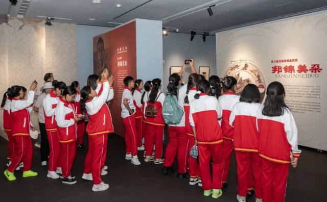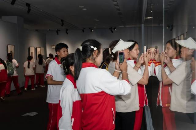 在讲解员的悉心引导下,师生们细致入微地欣赏了艺术家的作品,深入了解了作品的创作技法、经验以及艺术家在不同历史时期的创作心态和画面语境。当那些熟悉的人物形象、传说故事以一种相对陌生的形式展现在学生面前时,他们展现出强烈的好奇心和求知欲,全身心地投入到活动中。