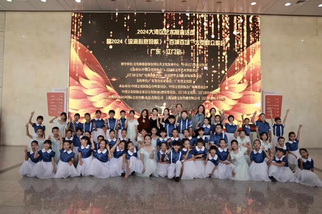尤为值得一提的是,在本次江门站歌会中,由江门市文化馆选送的江门市蓬江区范罗冈小学(滨江校区)雅范之声合唱,凭借《飞向蓝天》和《崖上的波妞》两首曲目荣获儿童童声组金奖。小演员们饱满的精神状态、扎实的演唱功底以及精彩的舞台表现,赢得了评委和观众的一致好评,也为江门争得了宝贵的荣誉。