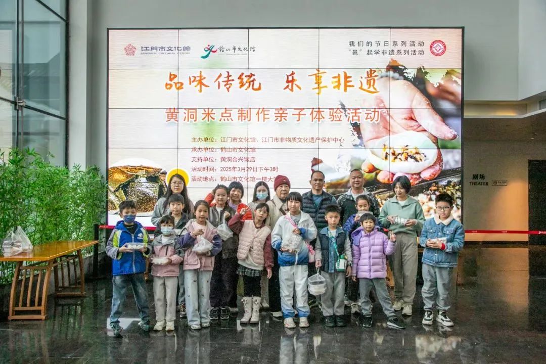 3月29日下午,由江门市文化馆、江门市非物质文化遗产保护中心主办,鹤山市文化馆承办,黄洞合兴饭店支持的“我们的节日”、“邑”起学非遗系列活动,“品味传统 乐享非遗——黄洞米点制作亲子体验活动”在鹤山市文化馆一楼大堂举行。