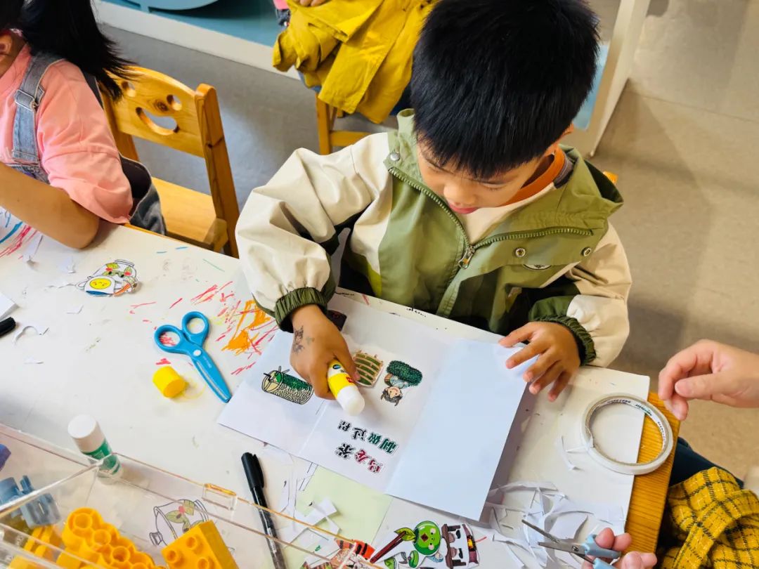 活动延伸的 “森林借书卡” 创意手工制作环节,成为了孩子们大显身手的舞台。活动现场准备了精美的卡纸、彩色画笔、树叶贴纸等材料。在文化志愿者老师的指导下,孩子们充分发挥想象力,设计属于自己的森林借书卡。他们用画笔在卡纸上描绘出森林中的动物、树木,或是写上自己喜欢的书名和座右铭,再贴上可爱的贴纸进行装饰。家长们在一旁耐心协助,和孩子一起讨论设计方案,亲子间互动频繁。不一会儿,一张张独一无二、充满创意的森林借书卡便诞生了,孩子们看着自己的作品,满脸洋溢着自豪。