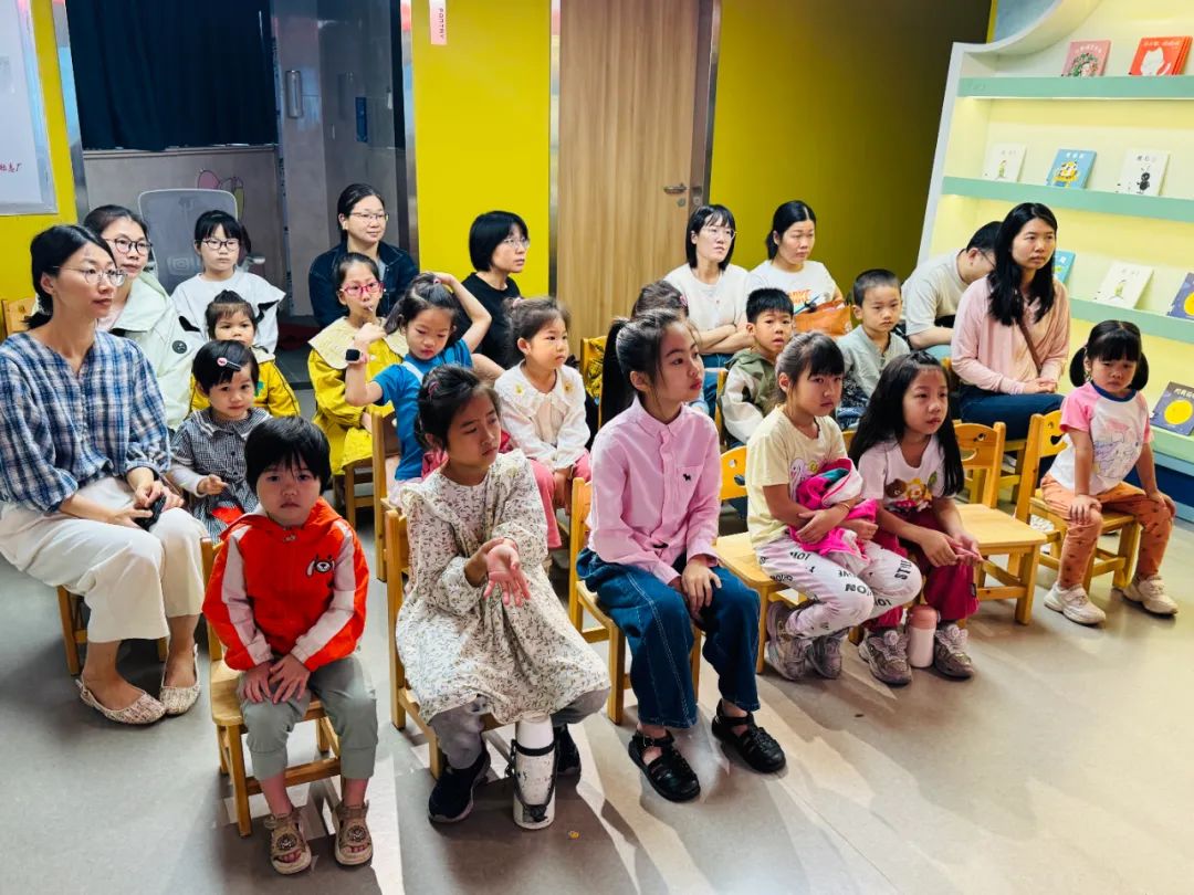 活动开场,文化志愿者老师为大家讲述《森林图书馆》的故事。在森林深处,那幢宁静的杉树房子是猫头鹰的家,爱书的猫头鹰一直独自生活,鲜有人来访。直到有一天,小兔和小狐狸偶然间闯入,发现了满屋子丰富的书籍。自那以后,它们每日都来这里读书,消息传开,森林里的其他动物也纷纷前来。随着读书的动物越来越多,一系列问题接踵而至,猫头鹰开始思考:如何让大家安静读书、怎样帮大家从众多书籍里找到心仪之书、又该如何应对读书犯困的动物…… 孩子们和家长们都听得入神,仿佛自己也置身于那奇妙的森林图书馆中,感受着故事里的点滴变化。