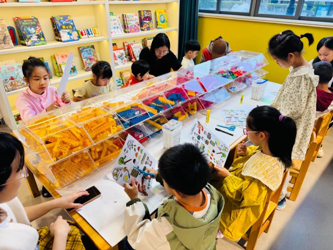 讲读结束后,手工创作环节“小书签”将活动推向又一个高潮。在志愿者老师的指导下,孩子们和家长们齐心协力,充分发挥创意,用彩纸、画笔、丝带等材料制作出独一无二的小书签。有的孩子在书签上画上可爱的小动物,有的描绘出自己心中的图书馆模样,还有的写上激励自己阅读的话语。家长们则在一旁耐心协助,与孩子共同完成这份充满意义的作品。一张张精美的小书签,不仅封存着亲子协作的温馨瞬间,更将化作孩子们遨游书海的 “引航标”,激励他们在阅读中品悟书香、浸润心灵。