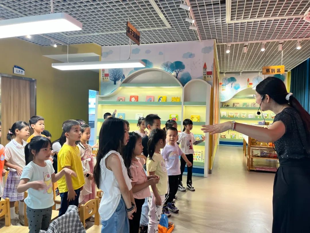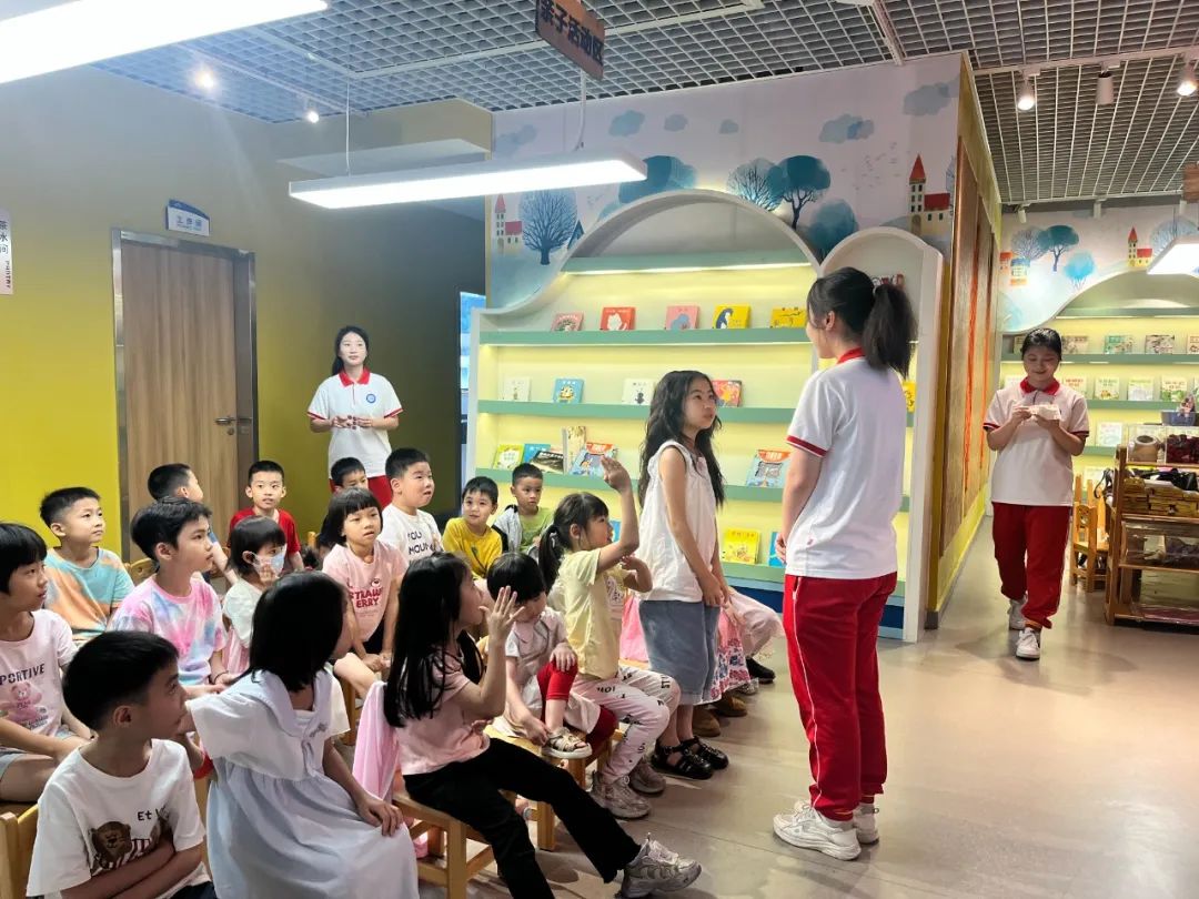 活动伊始,一场别开生面的热身游戏“图书馆想想看”迅速点燃了现场气氛。游戏中,指令员说出图书馆能做的事,如安静阅读、轻声交流,孩子们就做出相应的动作,或捧书作阅读状,或双手交叠放在嘴边模拟小声说话;当指令员说出不能做的事,比如大声喧哗、追逐打闹,孩子们则急忙摇头摆手,做出禁止的动作。孩子们全神贯注,在欢快的氛围中初步了解了图书馆的行为规范,现场欢声笑语不断。