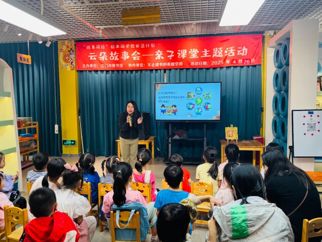 四月全民读书月,江门市图书馆呈献精彩阅读活动,云朵故事会围绕“阅绘999”推荐书目开展专题绘本故事会,从妙趣横生的亲子共读,到创意无限的互动体验,每一场活动都宛如春日里绽放的花朵,为孩子们和家长带来了知识与欢乐,留下了无数美好的回忆。