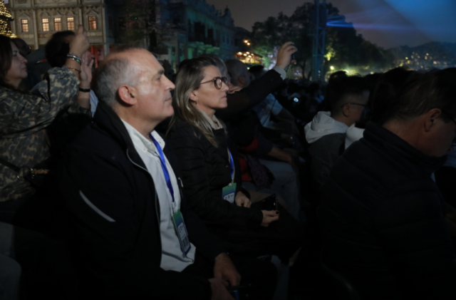 在赤坎华侨古镇,在工作人员的带领下,葡萄牙旅行商团坐上铛铛车穿梭于古镇的骑楼街巷,在欣赏充满艺术人文气息的特色建筑之余,共同观看了《归途》《火秀》等精彩演艺,沉浸式触摸侨乡文化的“温度”。