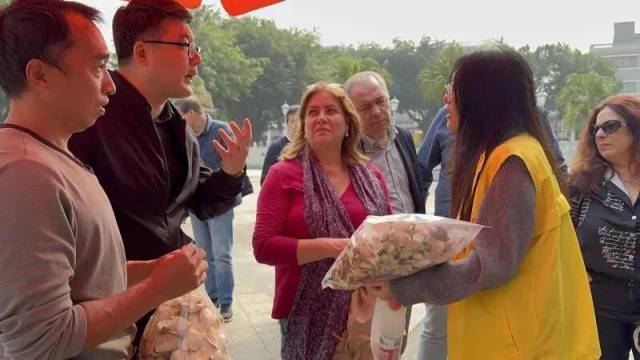 国家地理标志产品新会陈皮,成为商团参访的重点和亮点。在新会陈皮村,旅行商团成员不仅品尝了古井烧鹅、白切鸡等江门地道美食,还选购新会陈皮花生、凉果等特产;参观陈皮博物馆时,他们品尝了醇厚的新会陈皮水;在陈皮古道,他们亲身参与柑普茶制作,沉浸式体验陈皮相关非遗技艺,对这一特色产业留下深刻印象。