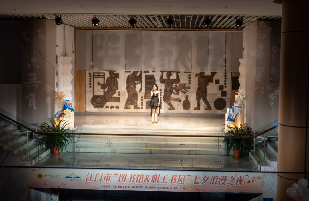 七夕当晚,一场“图书馆&职工书屋”七夕浪漫之夜书香文艺活动在江门市图书馆精彩举办。活动由江门市总工会、江门市图书馆共同主办。我市职工家庭、读者朋友近200人参与活动。城市书房“无负今日,唱响未来”舞台,灯光柔和,书香烂漫,萱草花在歌声中静静开放。