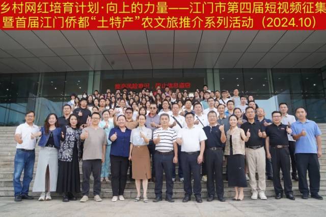 10月23日下午,由文化和旅游部全国公共文化发展中心乡村网红培育计划办公室、广东省农业科学院、江门市文化广电旅游体育局、江门市农业农村局指导,广东省农业科学院农业经济与信息研究所、广东省文化馆、江门市文化馆主办,广东省文化馆联盟数字文化委员会、广东亚太大健康产业有限公司、广州市手机摄影艺术协会承办的“乡村网红培育计划·向上的力量——江门市第四届短视频征集暨首届江门侨都‘土特产’农文旅推介系列活动”在江门市文化馆顺利举办,各相关单位领导嘉宾出席了活动。