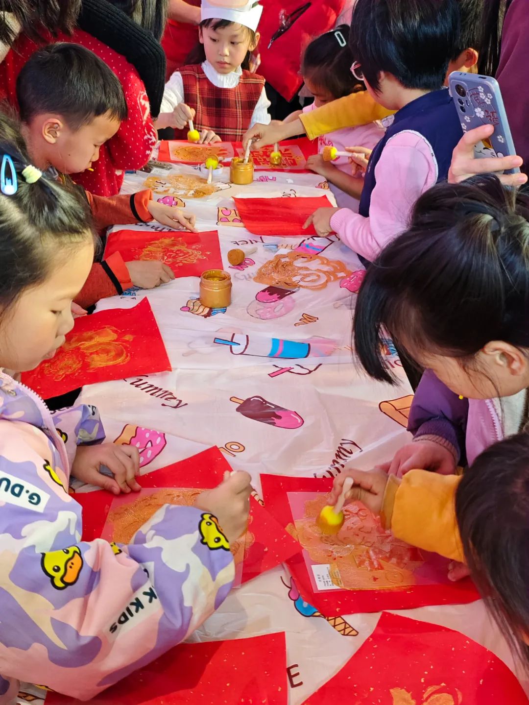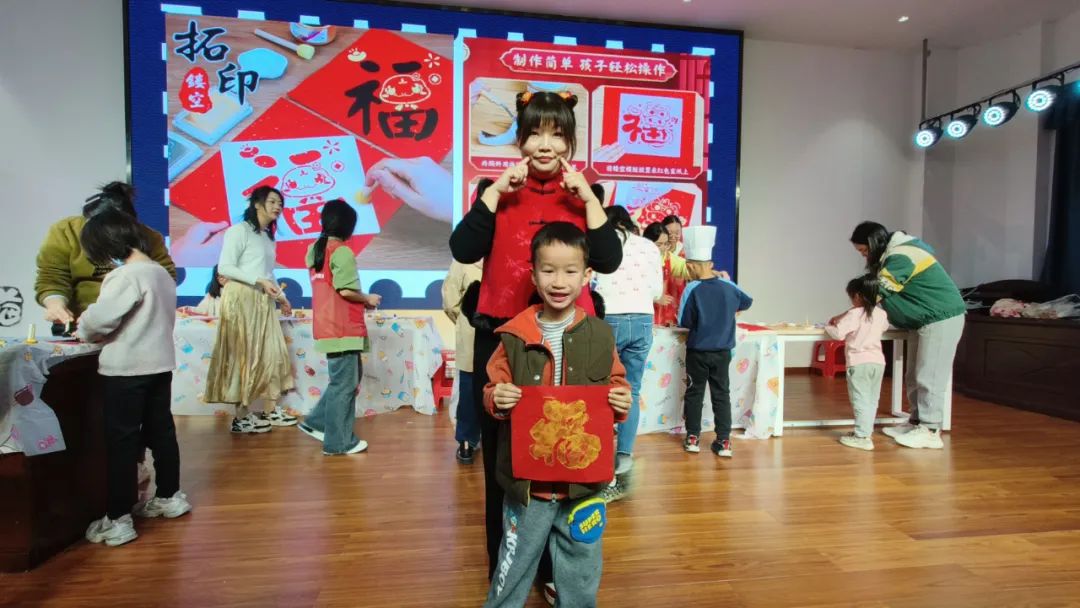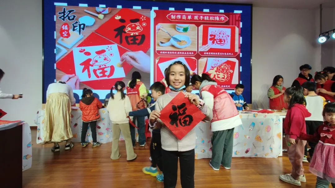 而手工制作环节的“福字拓印”,则将活动的节日氛围推向了高潮。参与者们亲手体验福字拓印的过程,感受传统文化的独特魅力,每一个精心拓印出的福字,都蕴含着对新年的美好期许与祝福。