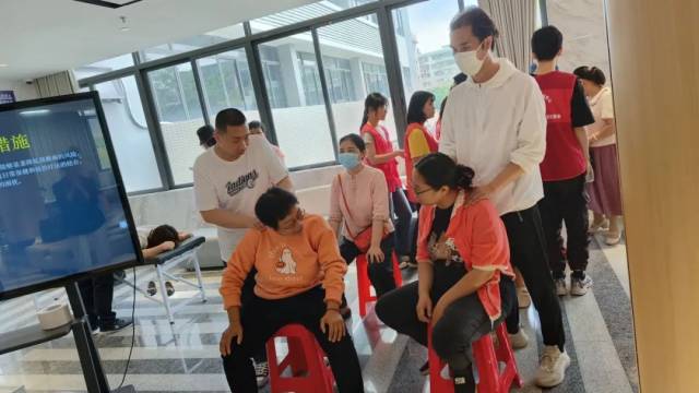 活动邀请江门市盲人协会义诊团队为市民读者开启一场“阅读与健康同行”的中医养生之旅。江门市盲人协会秘书长周志光、李启超两位老师主讲了颈椎病的成因与预防治疗措施。李启超老师深入剖析颈椎病的典型症状及成因,重点指出不良阅读姿势、长时间低头刷手机等现代生活方式对颈椎的危害;周老师则通过历史溯源:从《黄帝内经》《伤寒论》到明清推拿体系,揭示颈椎病防治的中医智慧,并现场演示简单实用的康复操如点头、转头等基本动作,配合肩部和上背部一起做放松运动。读者跟随示范动作练习,周老师一边做一边讲解穴位按压、伸展动作要领,强调“轻柔缓慢、循序渐进”原则。现场气氛热烈,参与者纷纷表示动作简单实用,可融入日常生活。在轻松愉悦的氛围中,读者不仅学到保健知识,更感受到中医文化的博大精深。