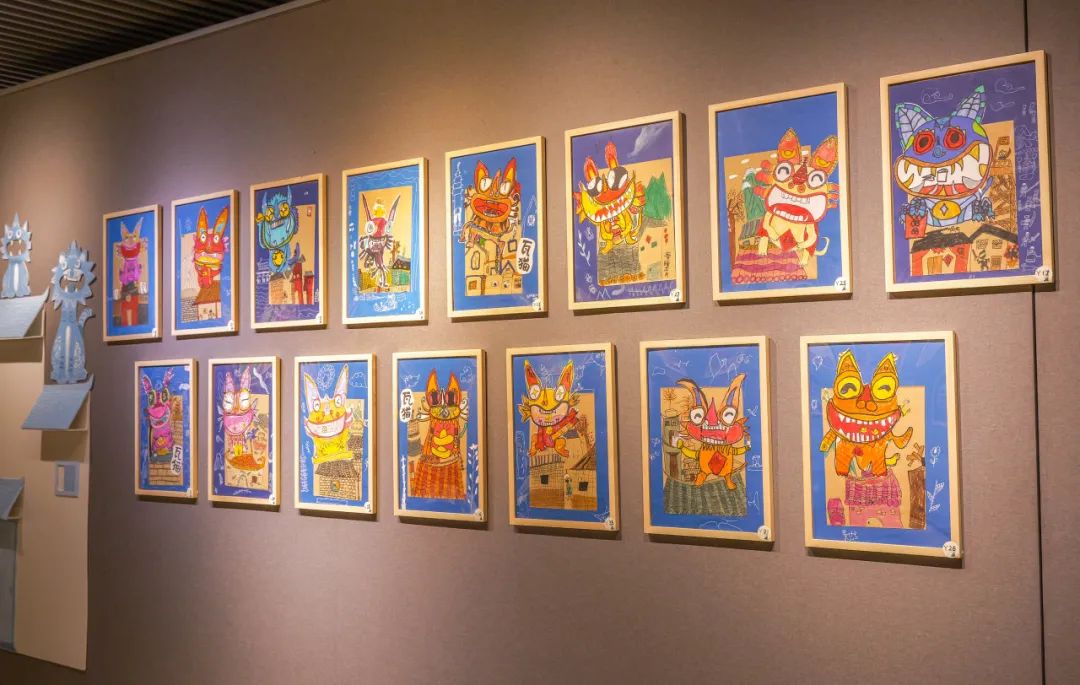 移步一楼展厅,一幅幅色彩斑斓、构思奇崛的作品正静候观者——从气韵生动的国画、油画、水彩,到将传统纹样巧妙融入狮头、帆布袋、油纸伞的文创设计,侨乡少年们以独特视角诠释“国潮”真谛,在方寸之间绘就传统与现代的惊艳交响。