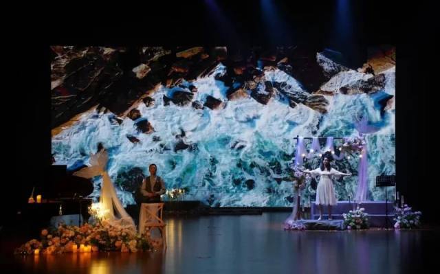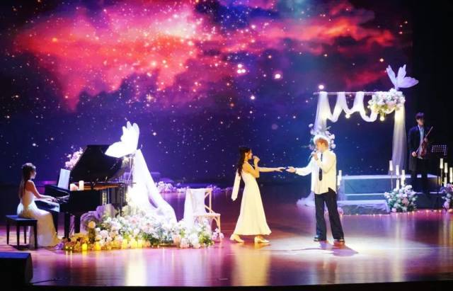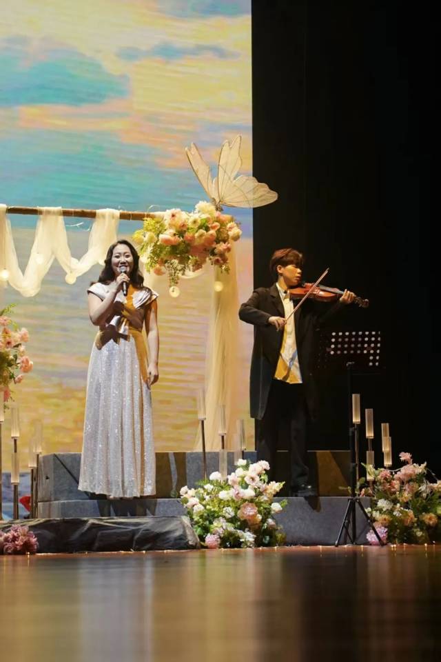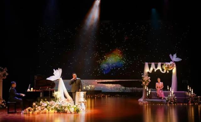 “取消主持人,是为了让观众获得连贯的观看体验。当观众步入剧场,舞台与观众席便融为一体,共同构成这场爱情叙事的一部分。”晚会导演、江门市戏剧家协会理事徐璐介绍,音乐会精选了大量现代爱情诗歌,配合唯美浪漫的舞台设计,让观众自然而然地沉浸在爱情的氛围中。