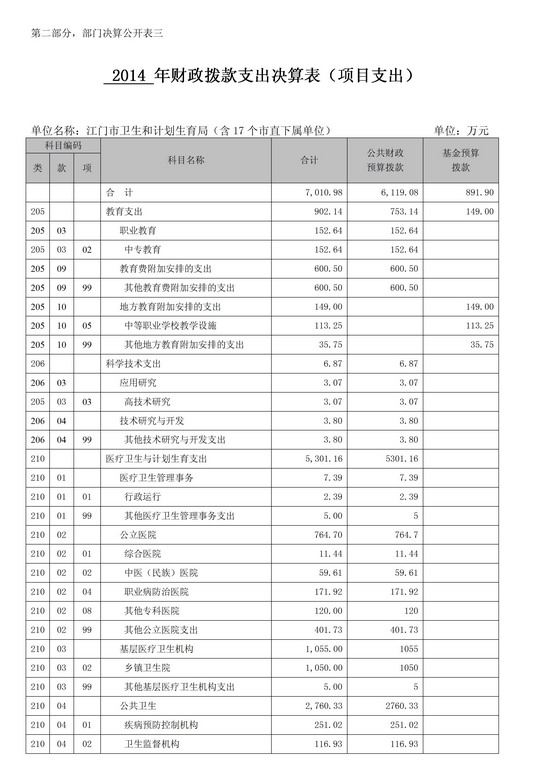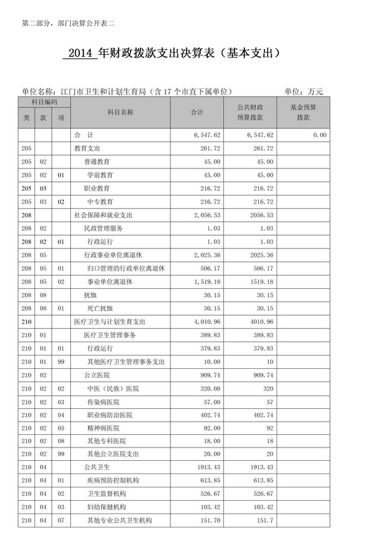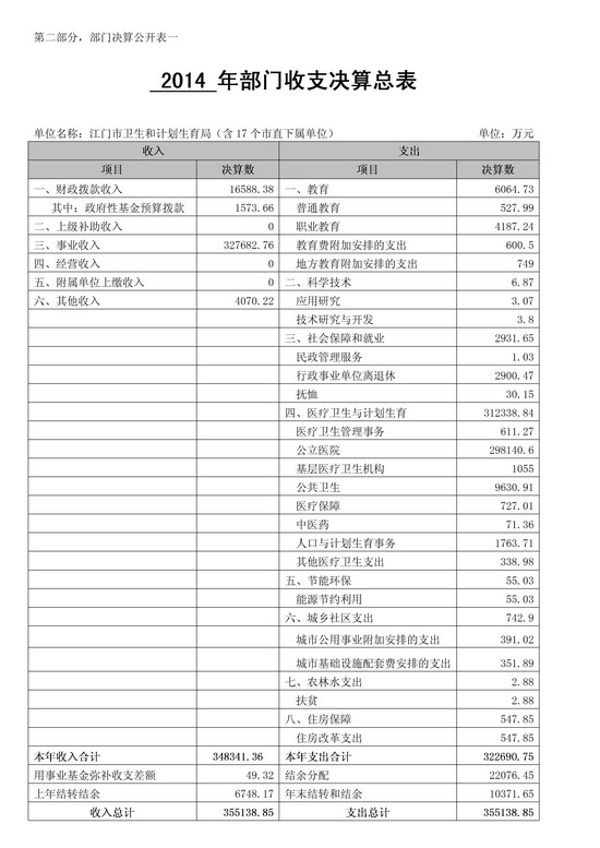 2014年江门市卫生和计划生育局(含17个市直下属单位)部门决算基本情况说明
