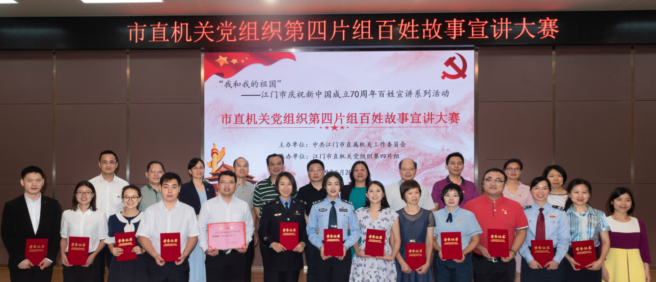 来自片组15个单位的参赛选手以“我和我的祖国·践行新思想 同筑中国梦”为主题,结合自己的工作实际、亲身经历和学习见闻,以“讲故事”为主要形式,娓娓讲述了个人、家庭、企业实业报国、爱岗敬业、生态文明、孝亲友善等故事,以及改革开放历程中,伴随国家强大共同成长的创业史、奋斗史和亲身经历的折射新中国富强、民主、文明、和谐的生活故事。其中江门出入境边防检查站的选手讲述了他们用65秒在火海中勇救46名小学生的故事;市公安局的选手向大家讲述了交警支队法医陈春霞20年如一日坚守岗位的故事;市应急管理局的选手讲述了市森林消防大队队员艰苦奉献的故事;市水利局的选手讲述了水利局退休干部梁乃强同志坚守一线,在抗台风中为保障群众生命财产安全奋不顾身的事迹;市自然资源局的选手讲述了全国绿化奖章获得者市林业科学研究所高级工程师税珺同志醉心于林业科研工作,为全市林业科研作贡献的故事。他们的故事,集中反映了侨乡人民的爱国之情、强国之志和报国之行,从不同侧面描绘出一幅幅新时代侨乡人民把个人理想追求融入国家和民族事业当中,融入到江门侨乡改革发展各项事业当中,为建设幸福美丽侨乡,实现中华民族伟大复兴的中国梦而努力奋斗的生动画卷,博得了现场阵阵热烈的掌声。
