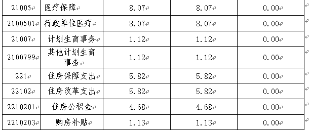 医疗卫生与计划生育支出(类)9.19万元,占财政拨款收入的7%。包括:行政单位医疗8.07万元,其他计划生育事务支出1.12万元。