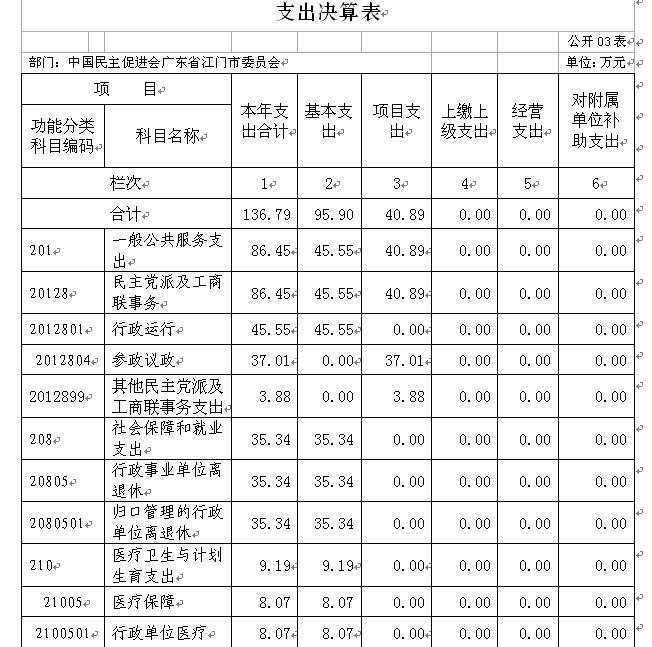 民进江门市委员会2015年度支出合计136.79万元。具体如下;