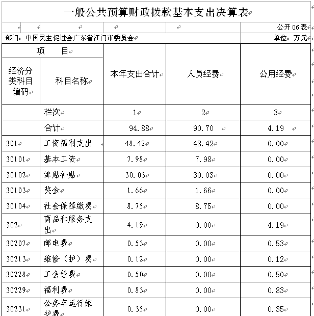 民进江门市委员会2015年度一般公共预算财政拨款基本支出94.88万元,其中: