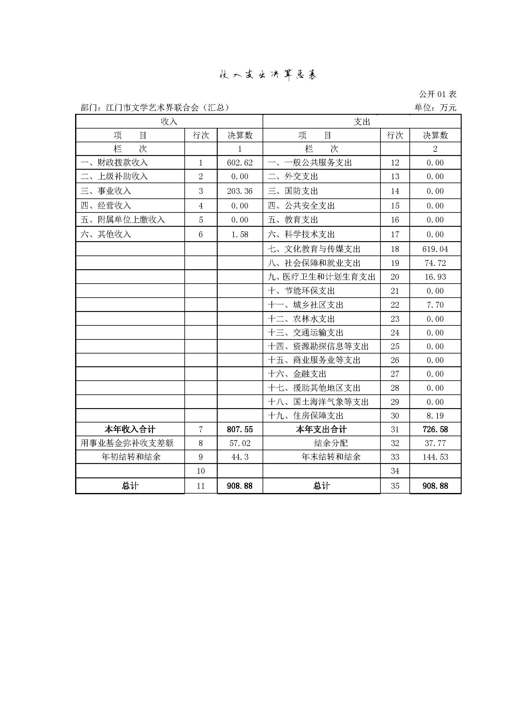 一、收入支出决算总表