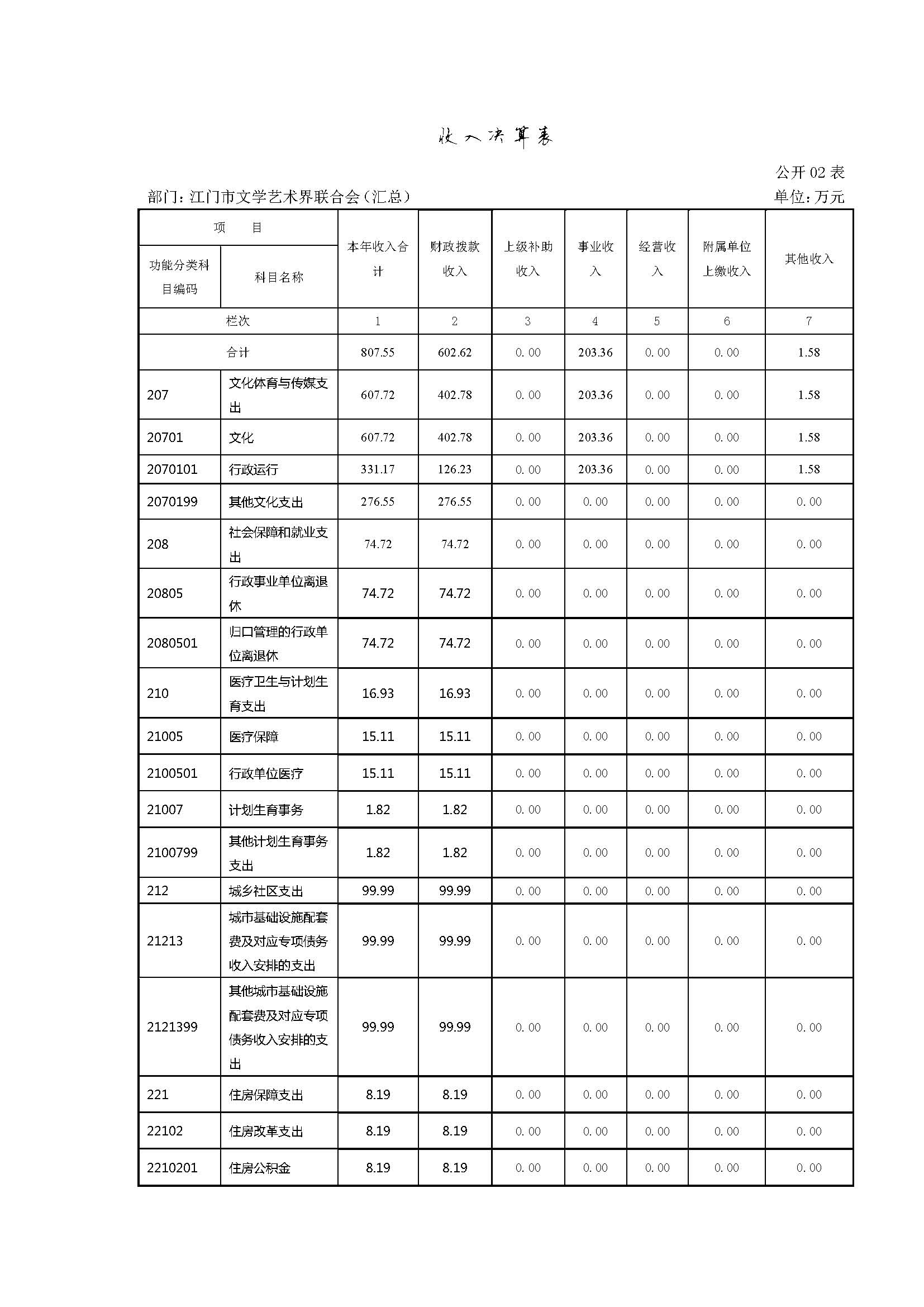 江门市文学艺术界联合会2015年度收入合计807.55 万元。