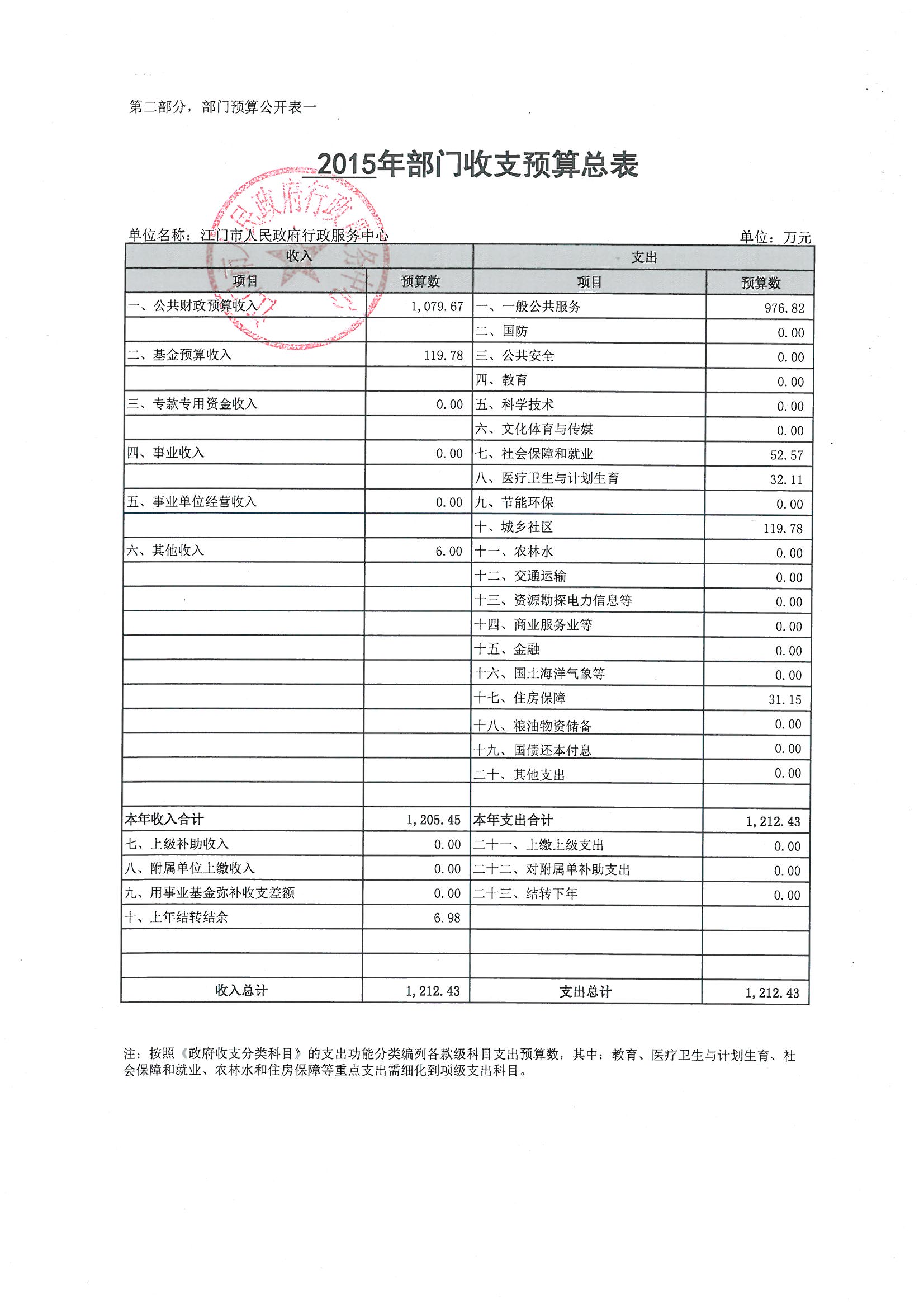 一、2015年部门收支预算总表