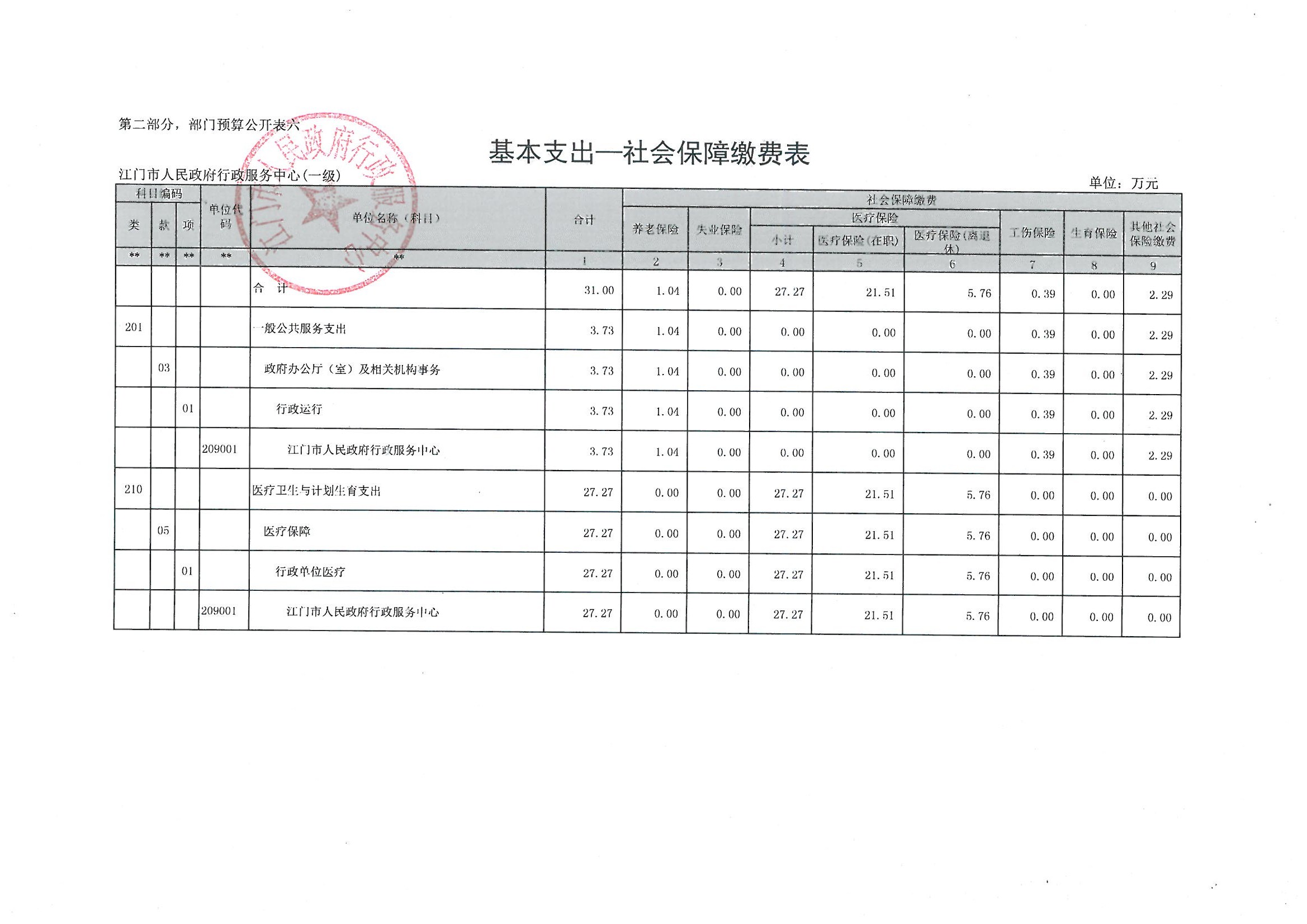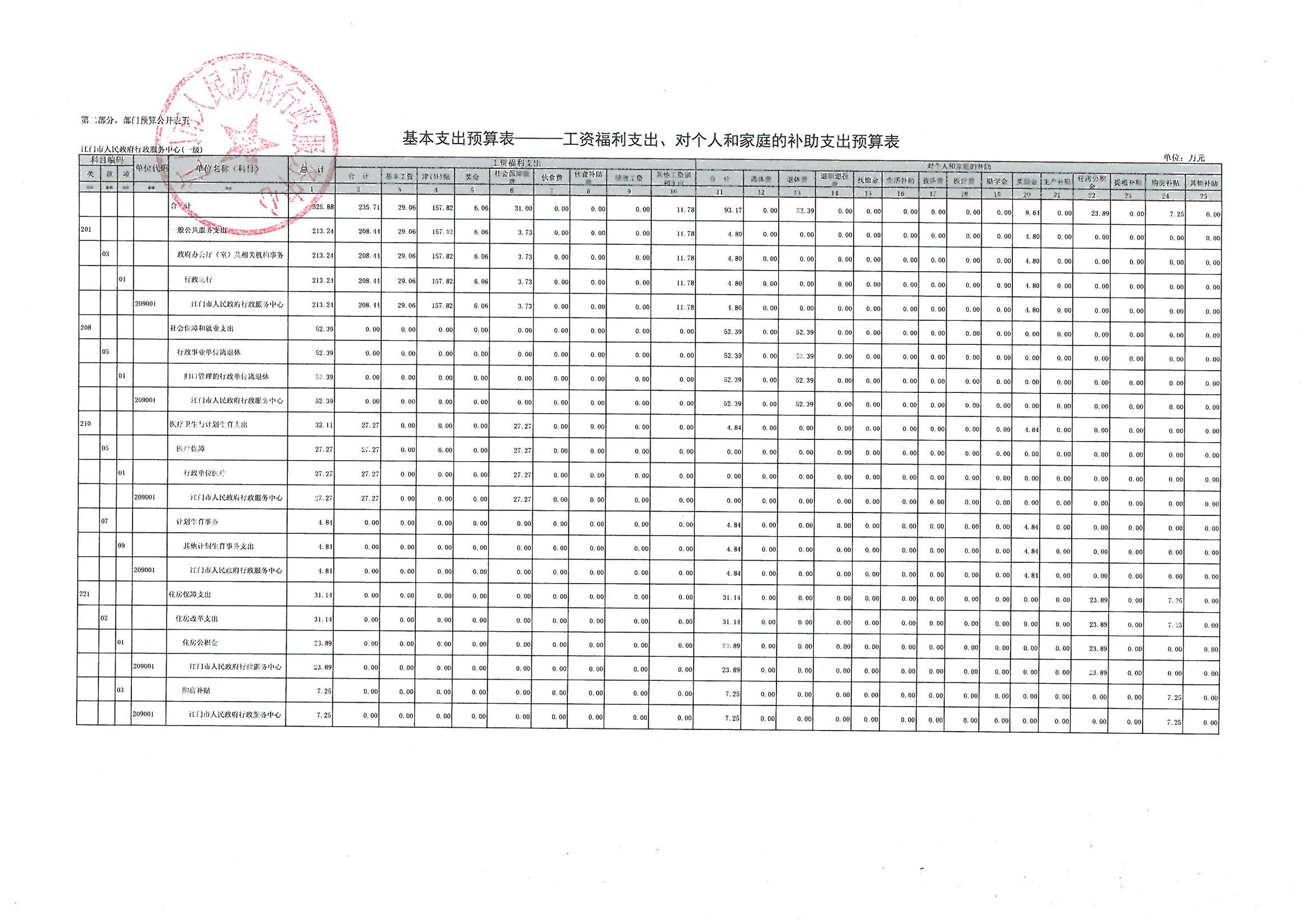 行政服务中心部门预算表
