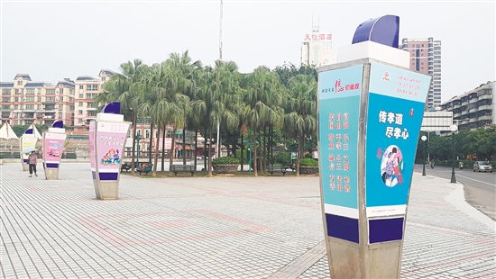 | 走在新会区街头,各式各样的创文公益广告抬头可见。 |