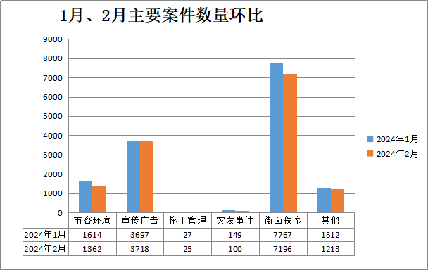 案件类别 | 2月(宗) | 1月(宗) | 增/减(宗) | 结案数(宗) | 结案率(%) | 案件主要类型 |