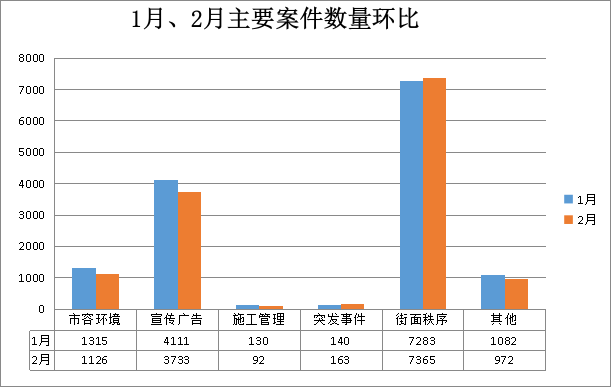 案件类别 | 2月(宗) | 1月(宗) | 增/减(宗) | 结案数(宗) | 结案率(%) | 案件主要类型 |
