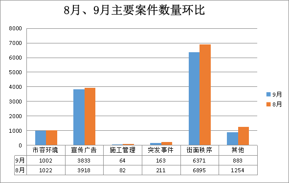 案件类别 | 9月(宗) | 8月(宗) | 增/减(宗) | 结案数(宗) | 结案率(%) | 案件主要类型 |