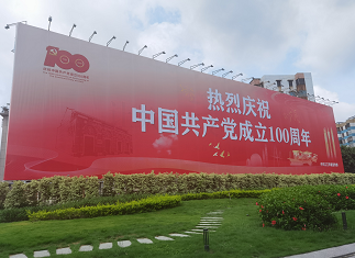 在万达广场灯光秀亮灯庆祝“100周年”,滚动刊播宣传标语(“热烈庆祝中国共产党成立100周年”“永远跟党走”“伟大的中国共产党万岁”),6月26日上演并组织江门日报、江门广播电视台、南方日报、触电新闻等媒体制作主题短视频进行二次有效刊播。在新会玉湖、蓬江园山湖播放“100周年”主题水幕电影、音乐喷泉。同时,充分利用江门枢纽站、公园、市政和办公场所的亮化设施、设备,在晚上7时至11时,实施夜间亮灯(其中江门枢纽站亮灯至零时)。
