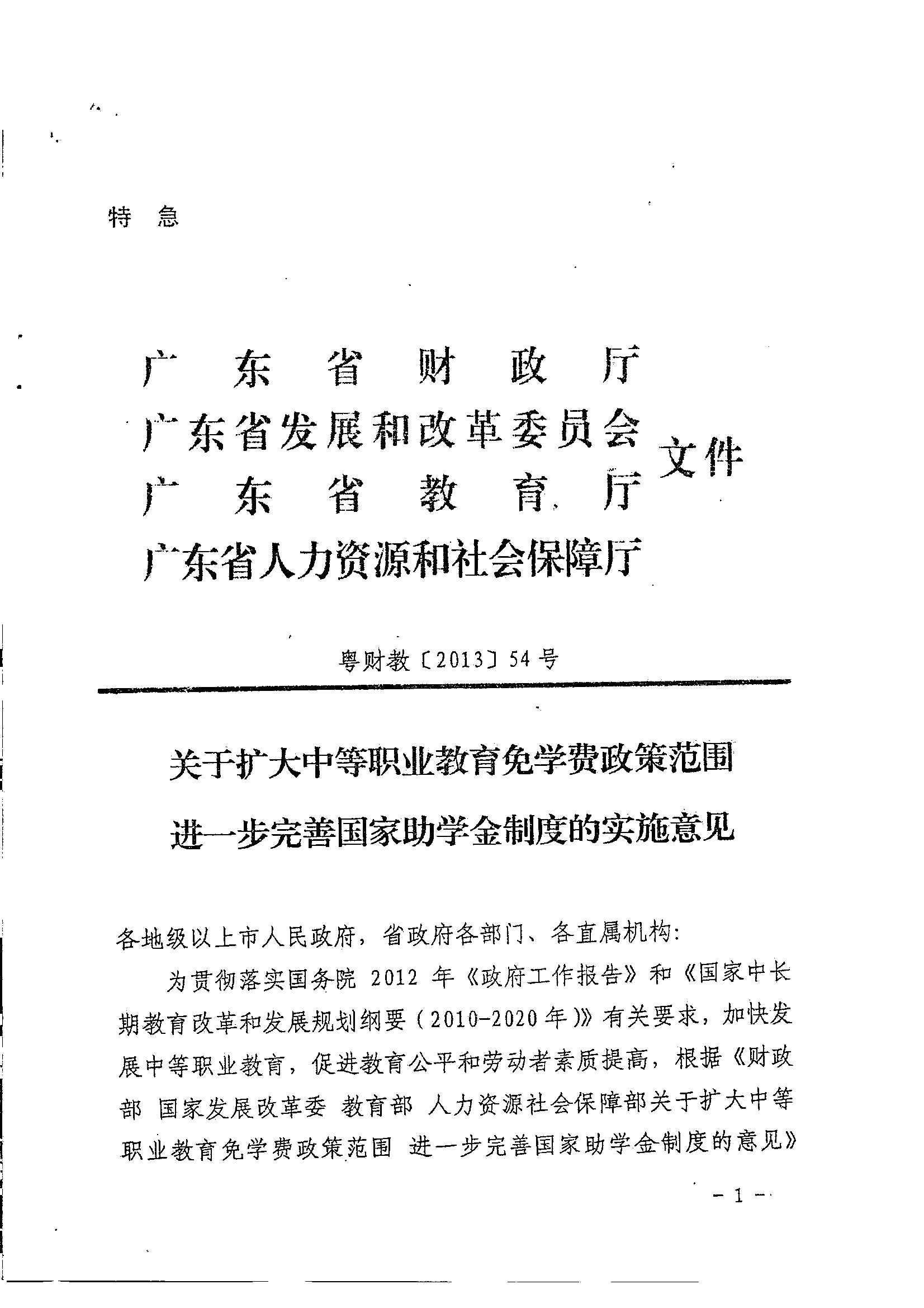 关于扩大中等职业教育免学费范围进一步完善国家助学金制度的实施意见