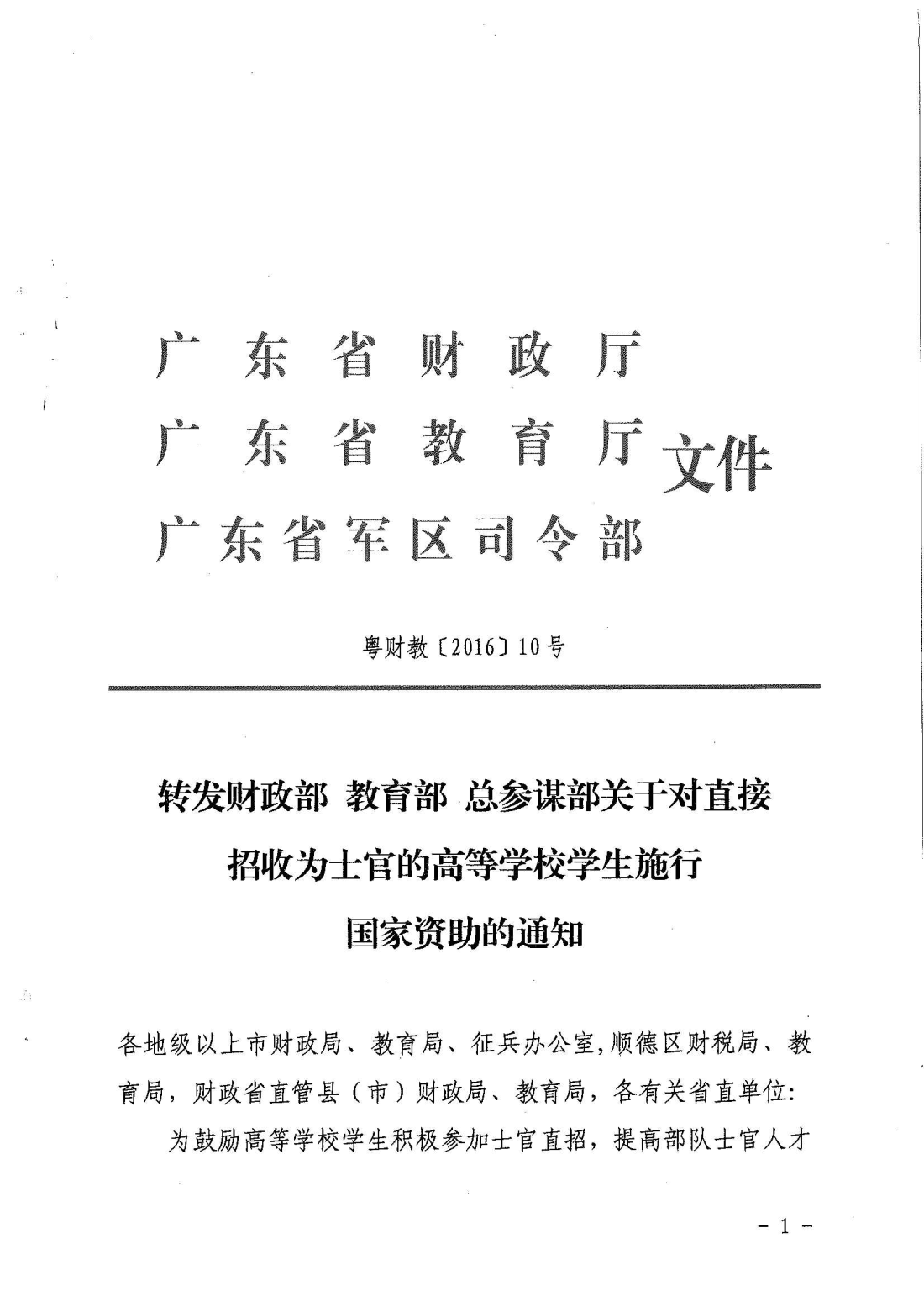 来源:广东省财政厅、教育厅、中国人民解放军广东省军分区司令部