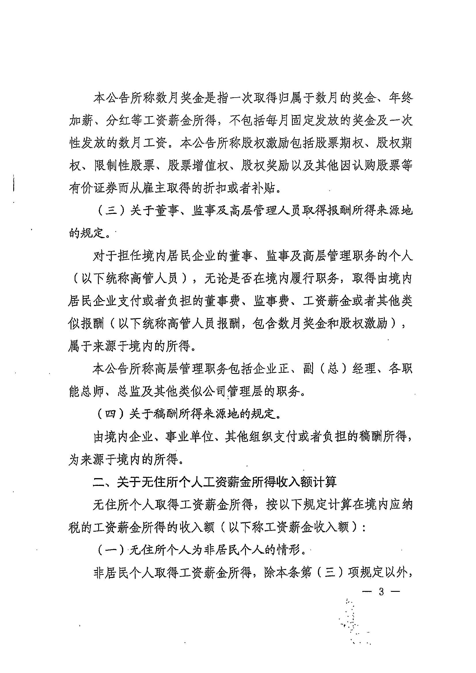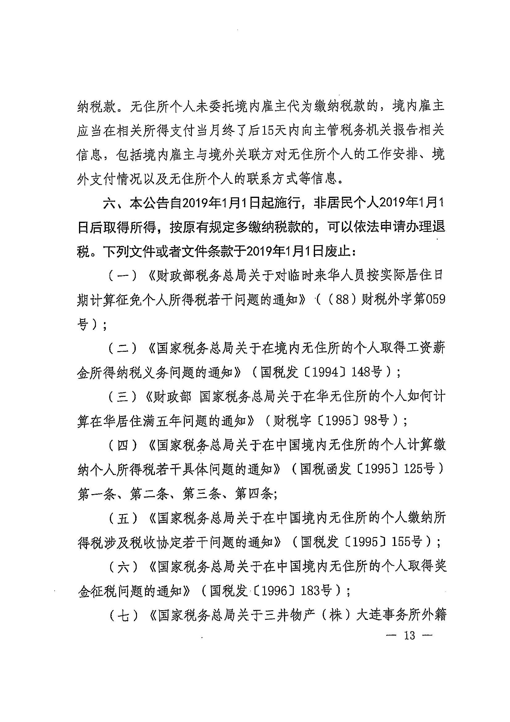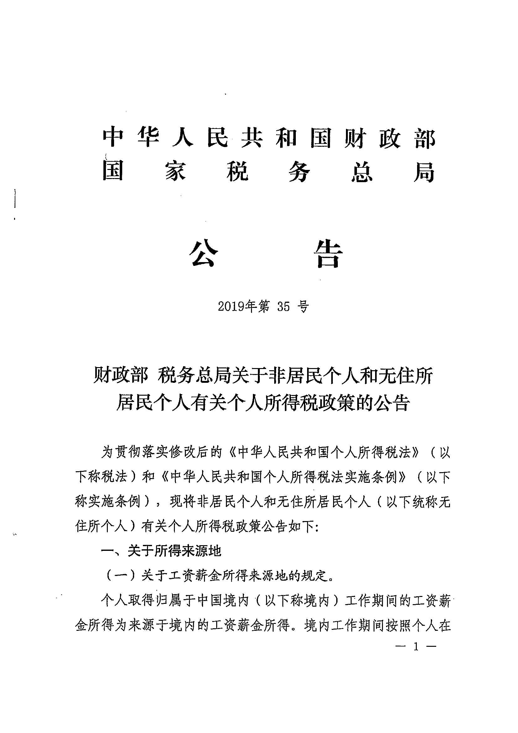 财政部 税务总局关于非居民个人和无住所居民个人有关个人所得税政策的公告