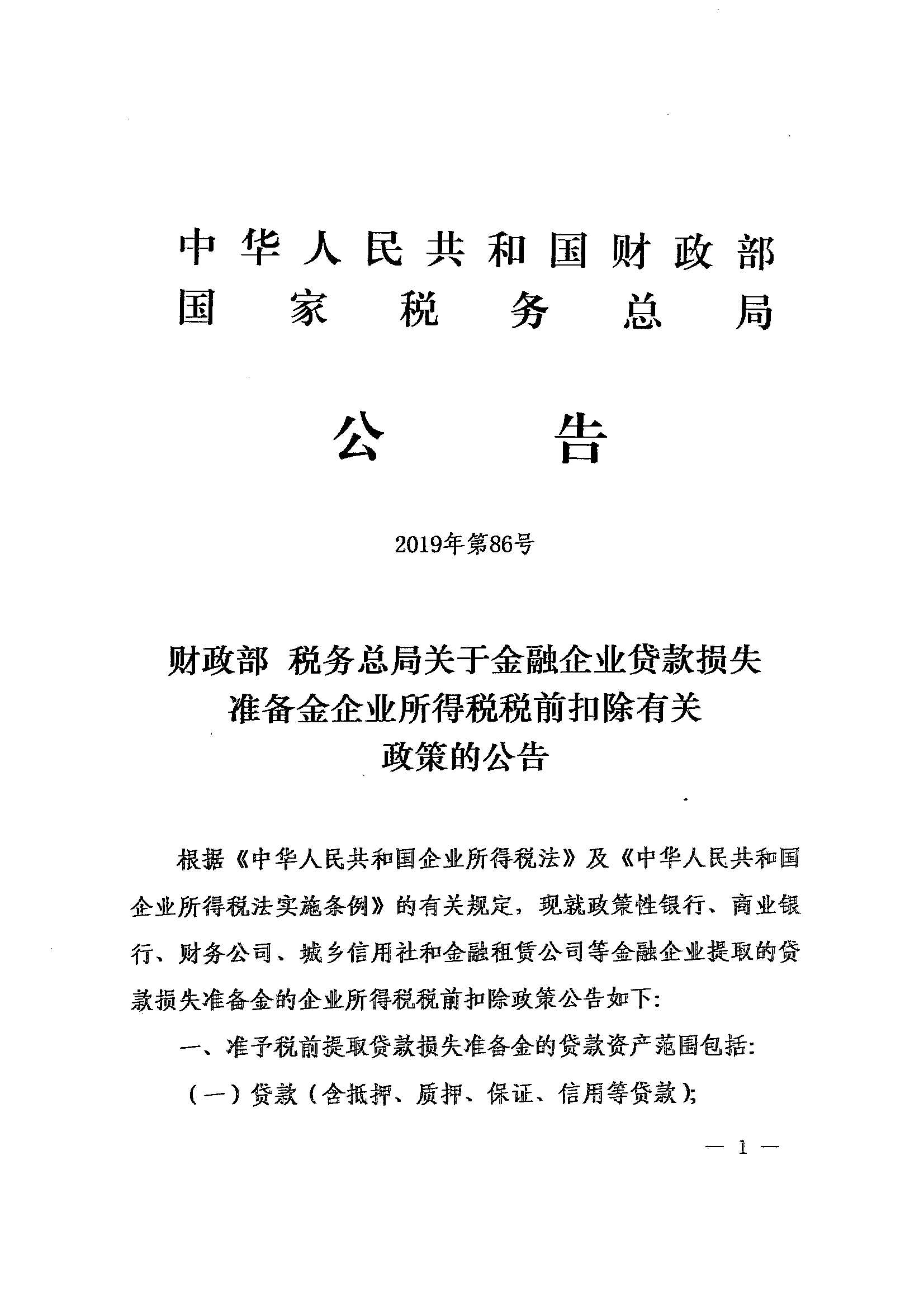 财政部 税务总局关于金融企业贷款损失准备金企业所得税税前扣除有关政策的公告