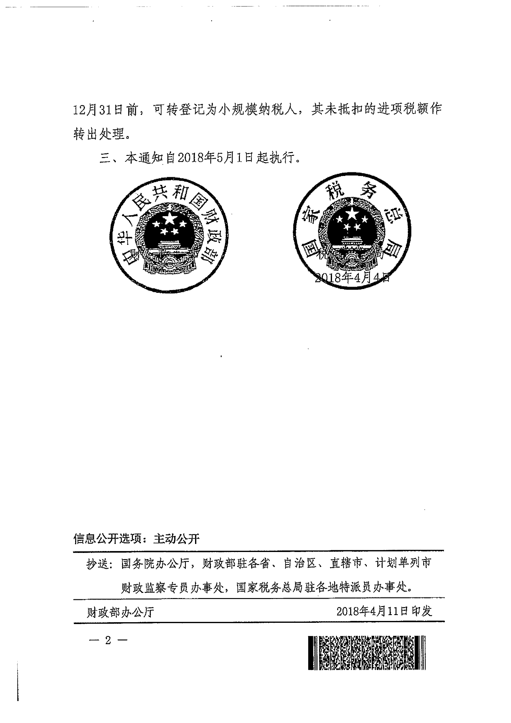 财政部 税务总局关于统一增值税小规模纳税人标准的通知