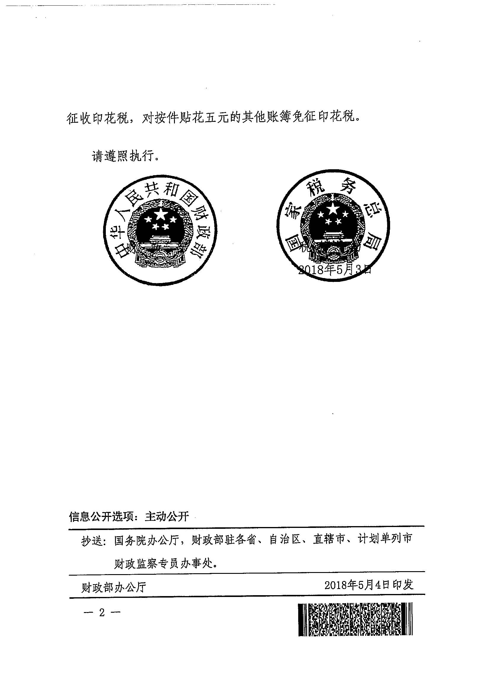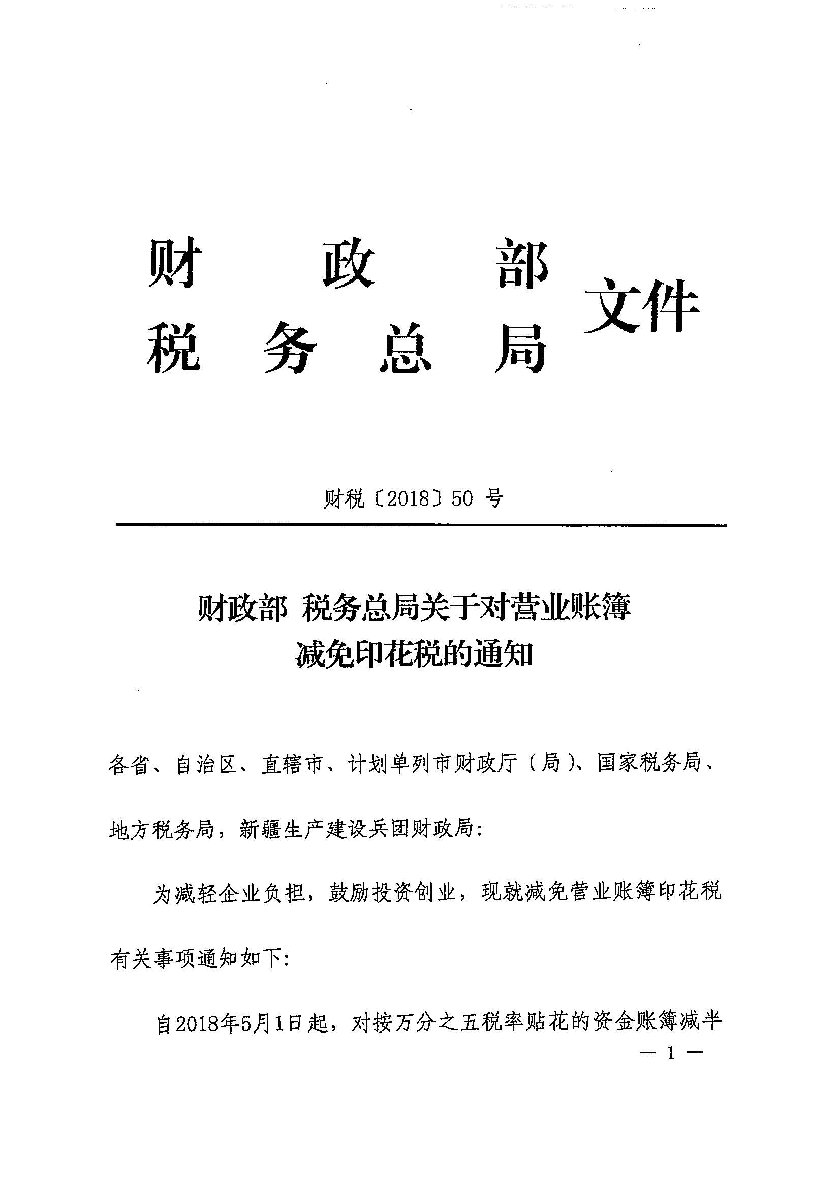 财政部 税务总局关于对营业账簿减免印花税的通知