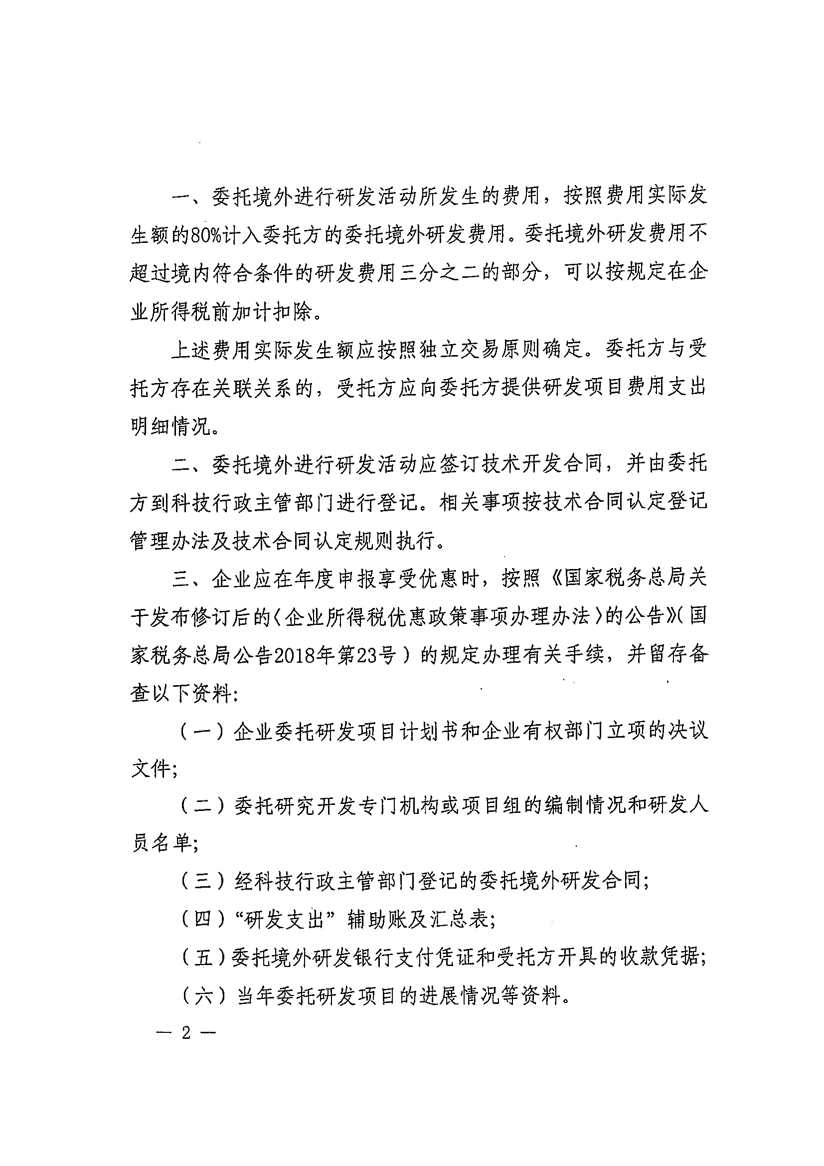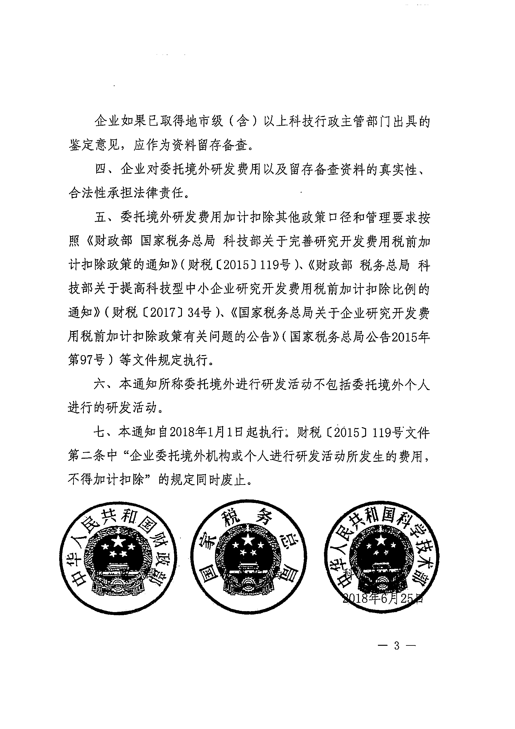 财政部 税务总局 科技部关于企业委托境外研究开发费用税前加计扣除有关政策问题的通知
